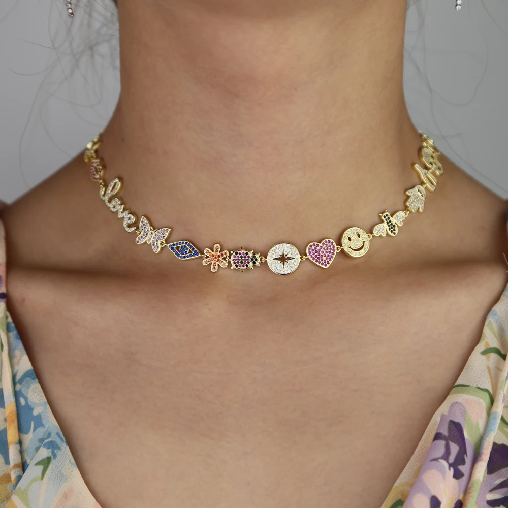 Женский короткий чокер с кубическим цирконием, летнее ожерелье с по...