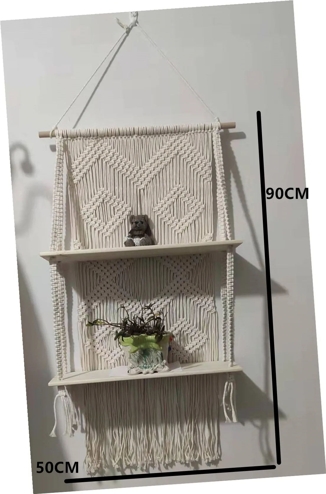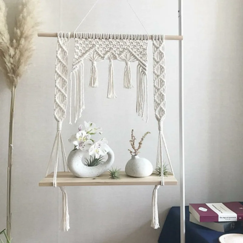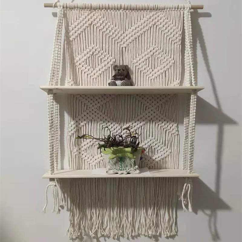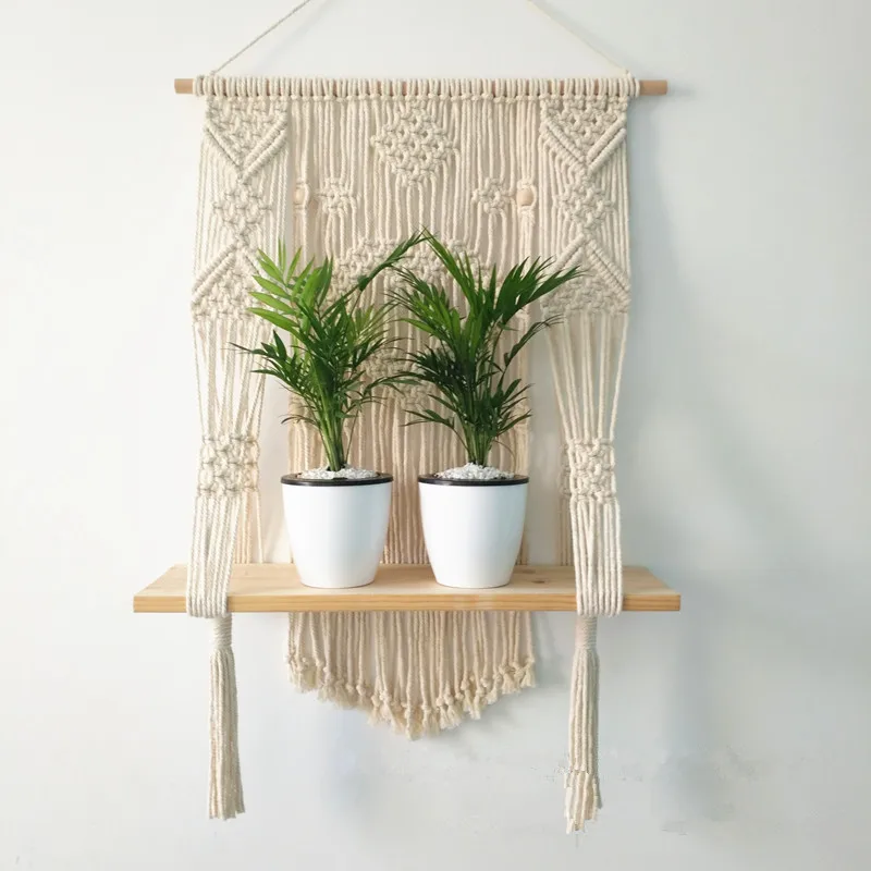 Подвесная корзина для растение ручной работы макраме, настенная вешалка для горшка с изнаночной окантовкой и деревянными бусинами вечерние украшение для дома, свадьбы
