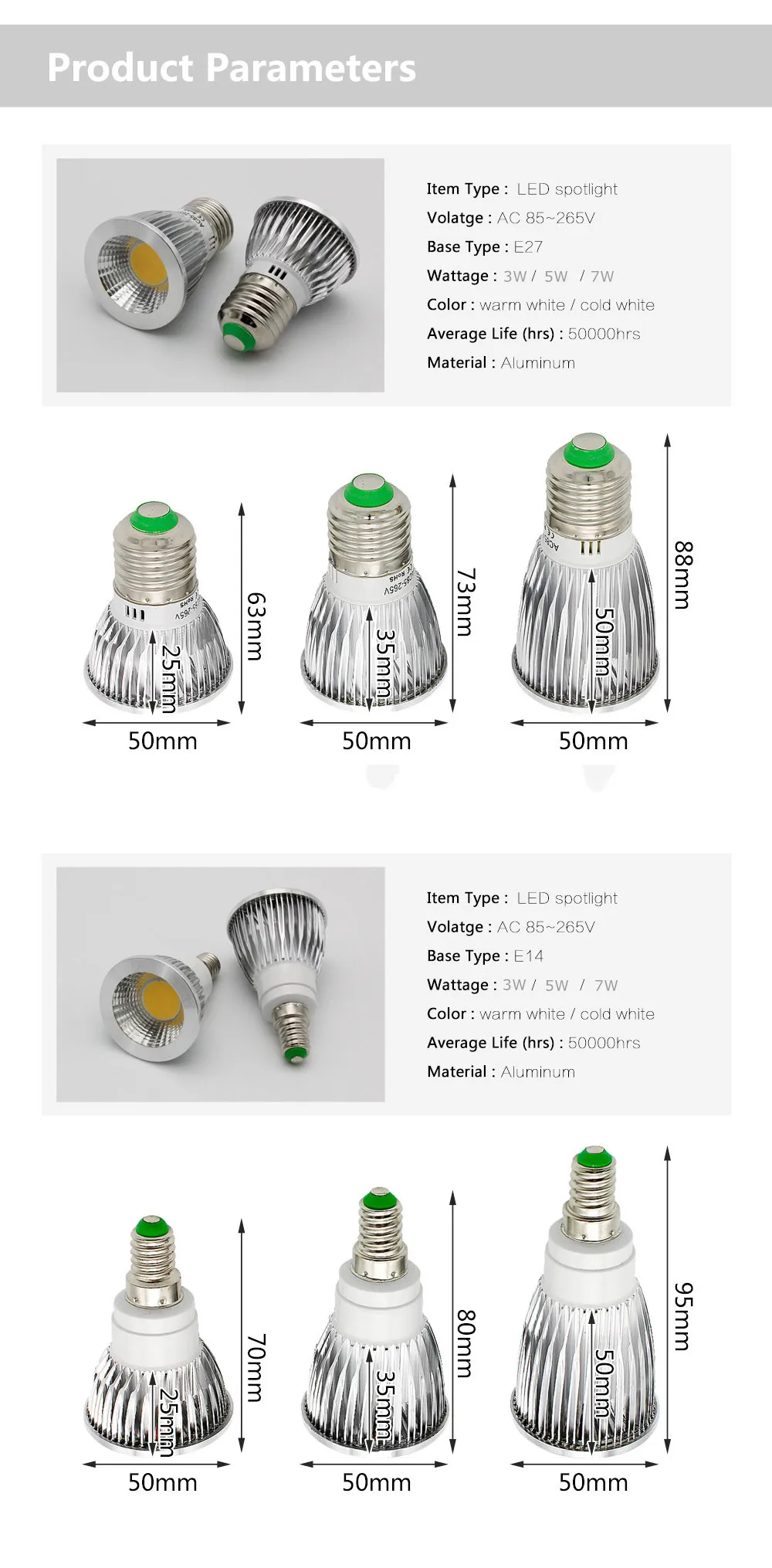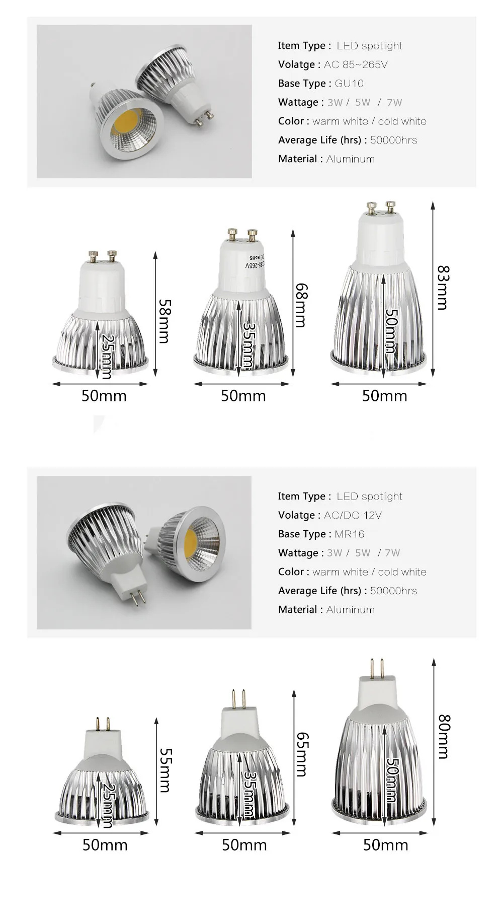 10 шт.лот ампула COB Светодиодный прожектор GU10 3 Вт 5 Вт 7 Вт E27 с регулируемой яркостью E14 Bombillas 85-265 в лампа MR16 AC DC 12 В Светодиодная лампа Lamparas