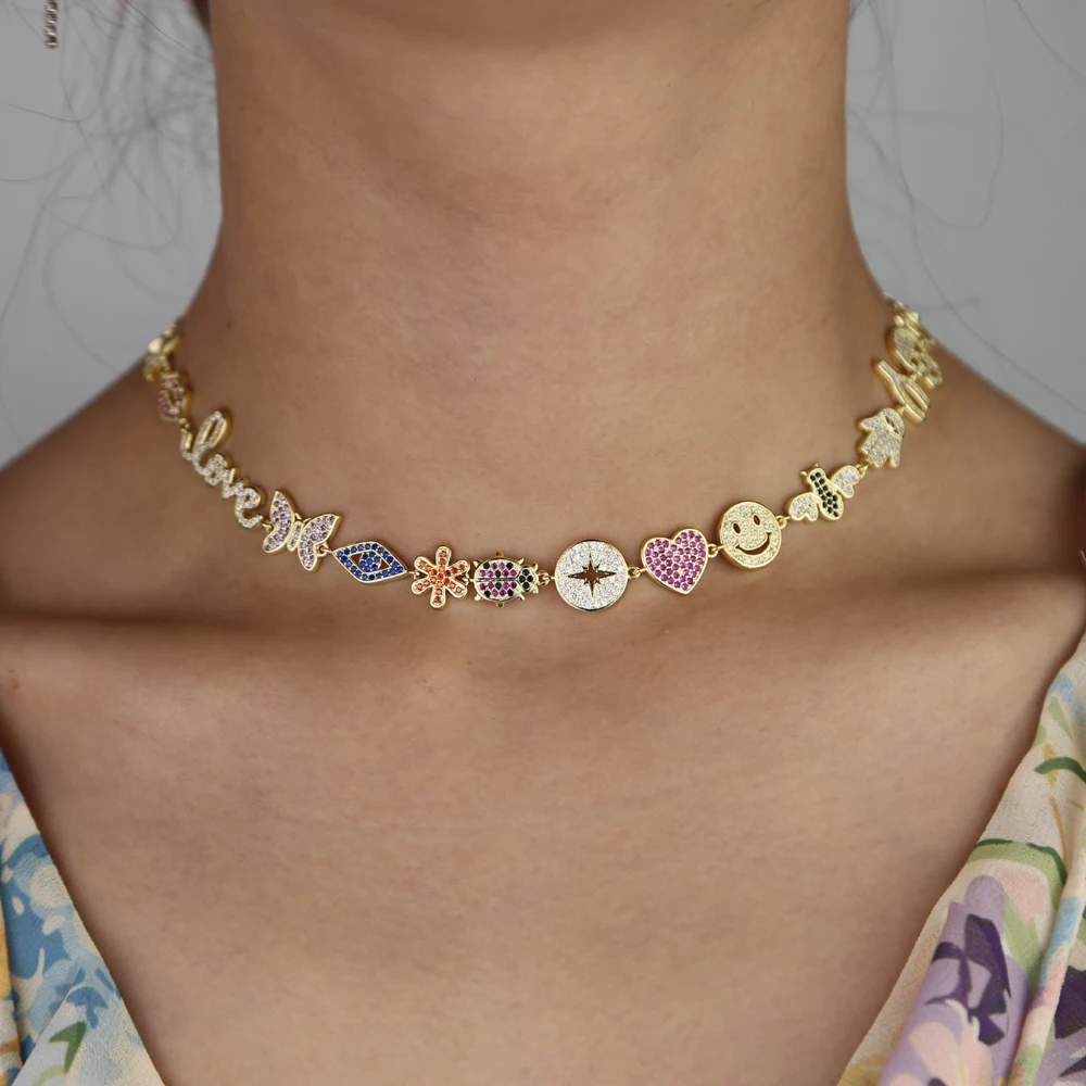 Женский короткий чокер с кубическим цирконием, летнее ожерелье с по...