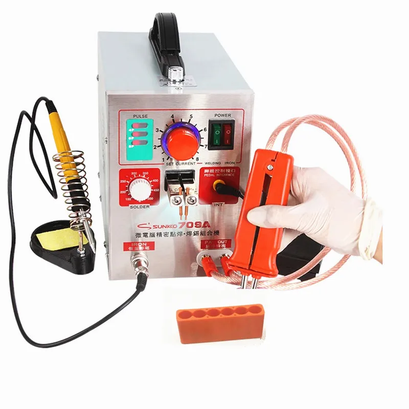 Деталь точечной сваркиПоставка Напряжение 220V / 50 HZ, переменный ток, 110 В/60 Гц (Выберите)Мощность 1,9 кВт (мгновенно)Ток 500 АЭлектрический выключатель утечки 60 A или более 60 AВремя двойного импульса 1 ~ 10 мс(Мгновенное время сварки) (регулируется, регулируя ручку сварочного тока)Время четырех импульсов 2 ~ 20 мс (регулируется)(Мгновенное время сварки)Время восьми импульсов 8 ~ 80 мс (регулируется)(Мгновенное время сварки)Диапазон сварочных штифтов 5 - 6 ммСварочное давление 300 - 500 гРегулируемое расстояние сваркиПодходит для сварки всех сплавов толщиной 0,03-0,3 мм дляЧистого никеля или никелированной стали диапазон составляет 0,08-0,2 мм.Часть паяльникаТемпература 150 °C ~ 450 °CМощность 50 ВтВыходное напряжение 20 В постоянного тока