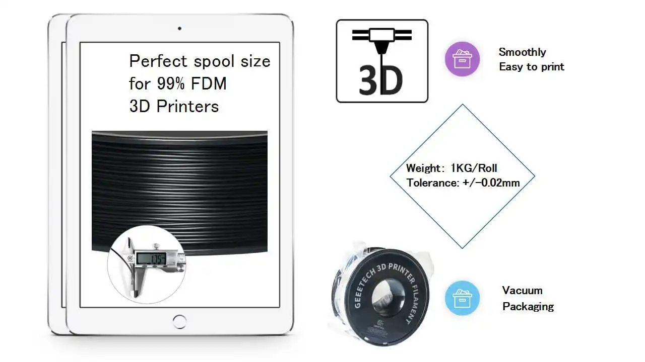 Купил GEEETECH white несколько месяцев назад и был приятно удивлен тем, насколько он Плотный Белый, по сравнению с дешевой неименной вещью, которую я получил на сайте аукциона, Я напечатал несколько деталей трека для RC Snow Cat и понял, что мой черный без имени был так же слаб по цвету и довольно строгим. Решили попробовать черный GEEETECH надеясь на тот же результат, что и белый, и я не был удален. Я сделал обычные тесты для веса и хрупкости, и у меня не было проблем. Это хороший Однотонный черный цвет с минимальными прочными свойствами, каждая ссылка напечатана почти идеально и не требует большой работы после печати, чтобы соответствовать им всем вместе и треку, чтобы работать гладко, маленький ящик для инструментов для хранения сопла и других частей также стал отличным.