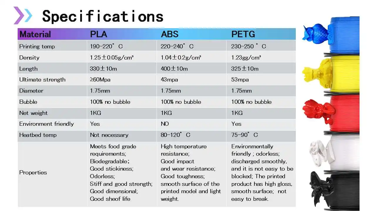 First, this filament prints great with my default PLA settings on the GEEETECH A10M(220/60). I haven't had any issues. Second, the color is almost perfect , I'm pleased with this filament and I might try other GEEETECH colors.