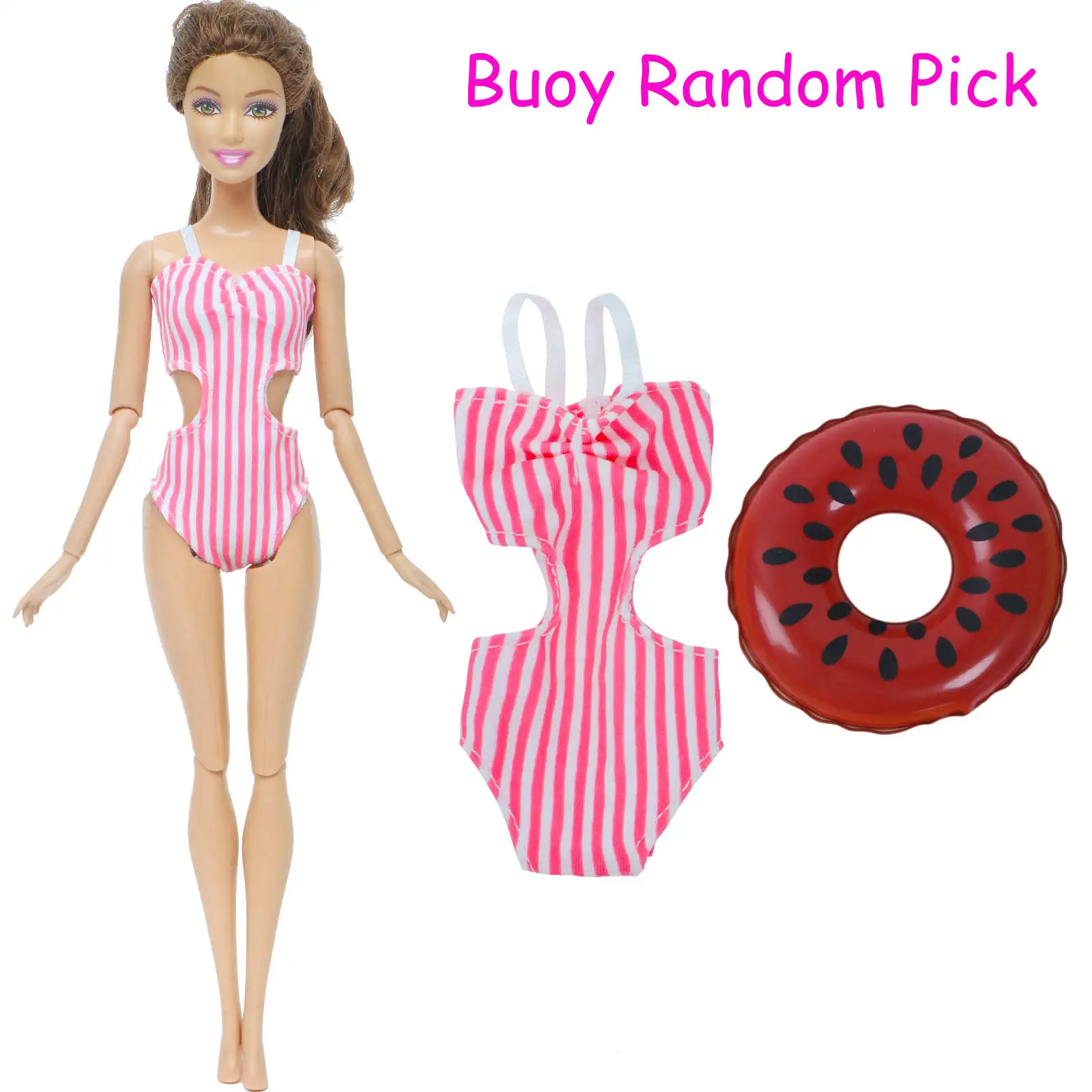 1x купальники для кукол пляжная одежда для купания, милое бикини, купальник + случайный 1x спасательный круг для куклы Барби, игрушки для девочек