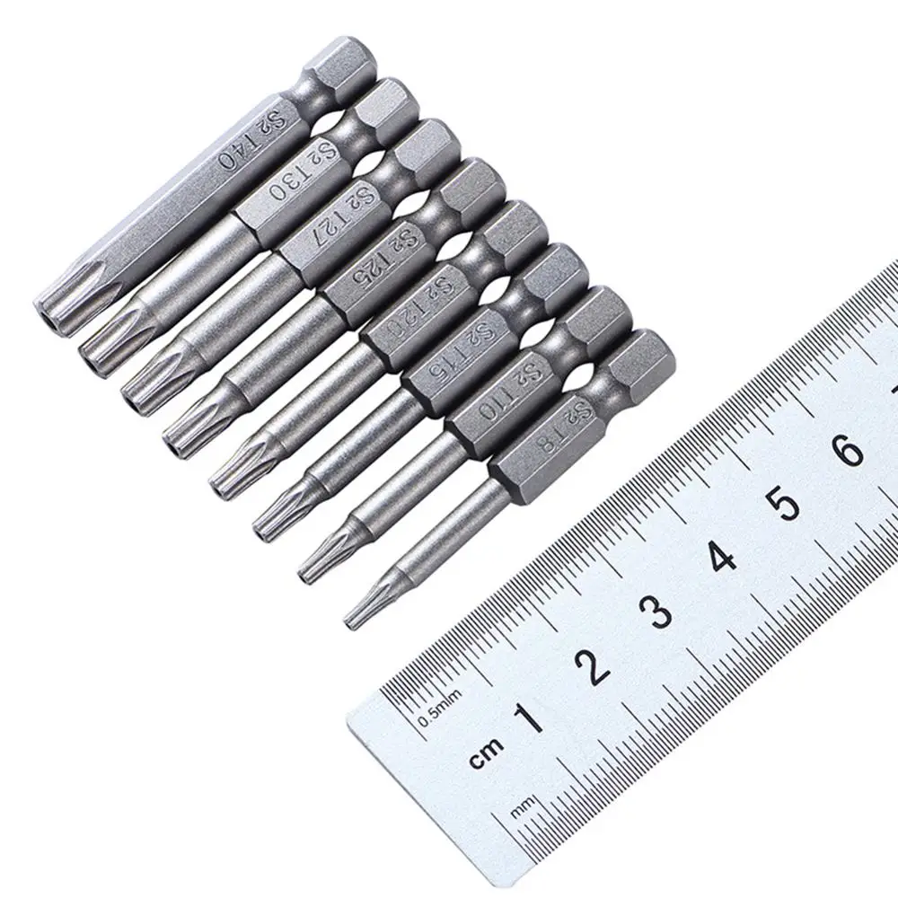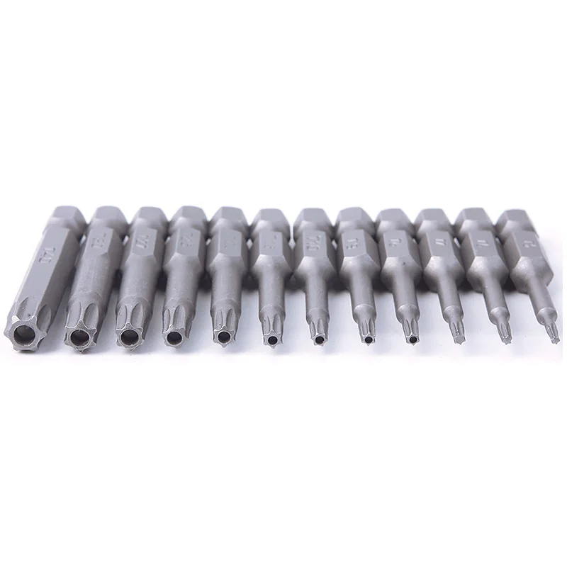 Тип головки: Torx. Тип хвостовика: 6,25 мм/1/4 дюйма с шестигранной головкой. Размер: T5, T6, T7, T8, T9, T10, T15, T20, T25, T27, T30, T40. Общая длина. : 50 мм/2 дюйма.Примечание: