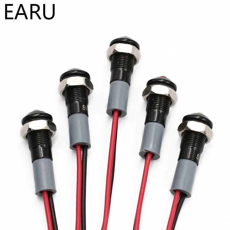 Водонепроницаесветодиодный металлическая Светодиодная лампа Предупреждение с черной круглой головкой, 6 мм, предупреждающая лампа, пилотный провод, 5 В, 12 В, 24 В, 110 В, 220 В, красный, синий