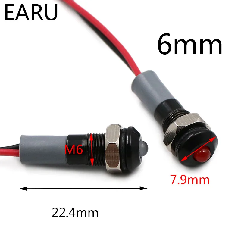 Лампа Водонепроницаемая IP67 сигнальная, 6 мм, 3 в, 5 В, 6 в, 9 В, ...