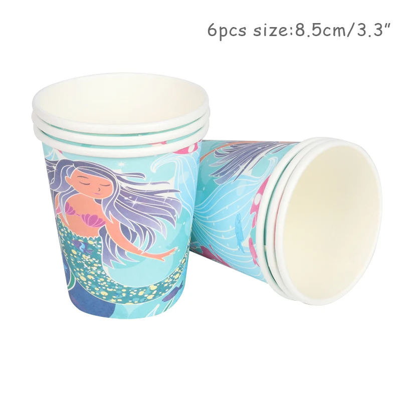 Набор одноразовых бумажных стаканчиков и тарелок русалка, посуда дл...