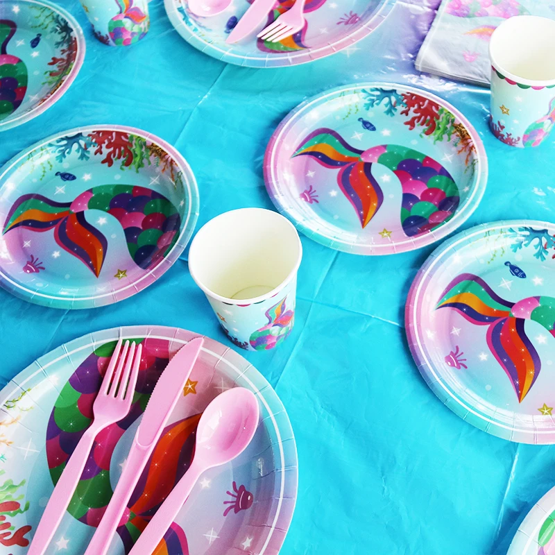 Одноразовые декоративная столовая посуда русалки для вечеринки на 1...