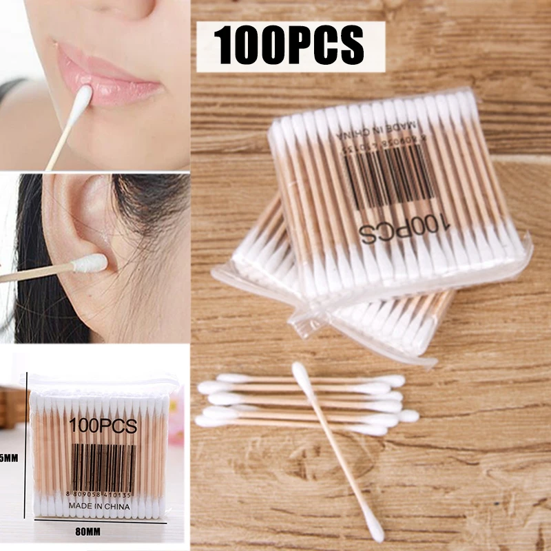 Посылка включает:100 шт х Деревянные ватные тампоны