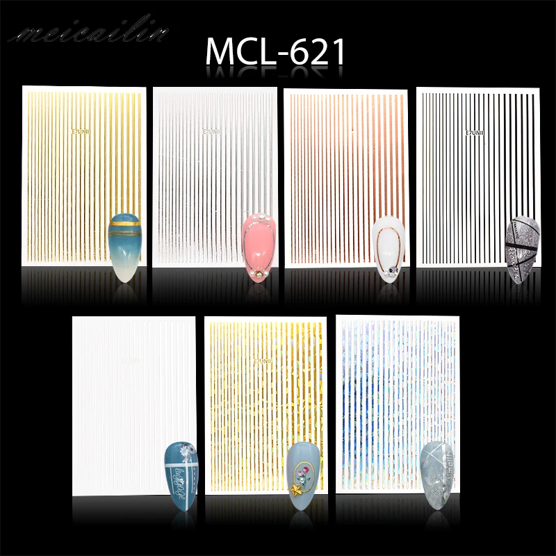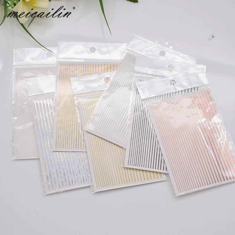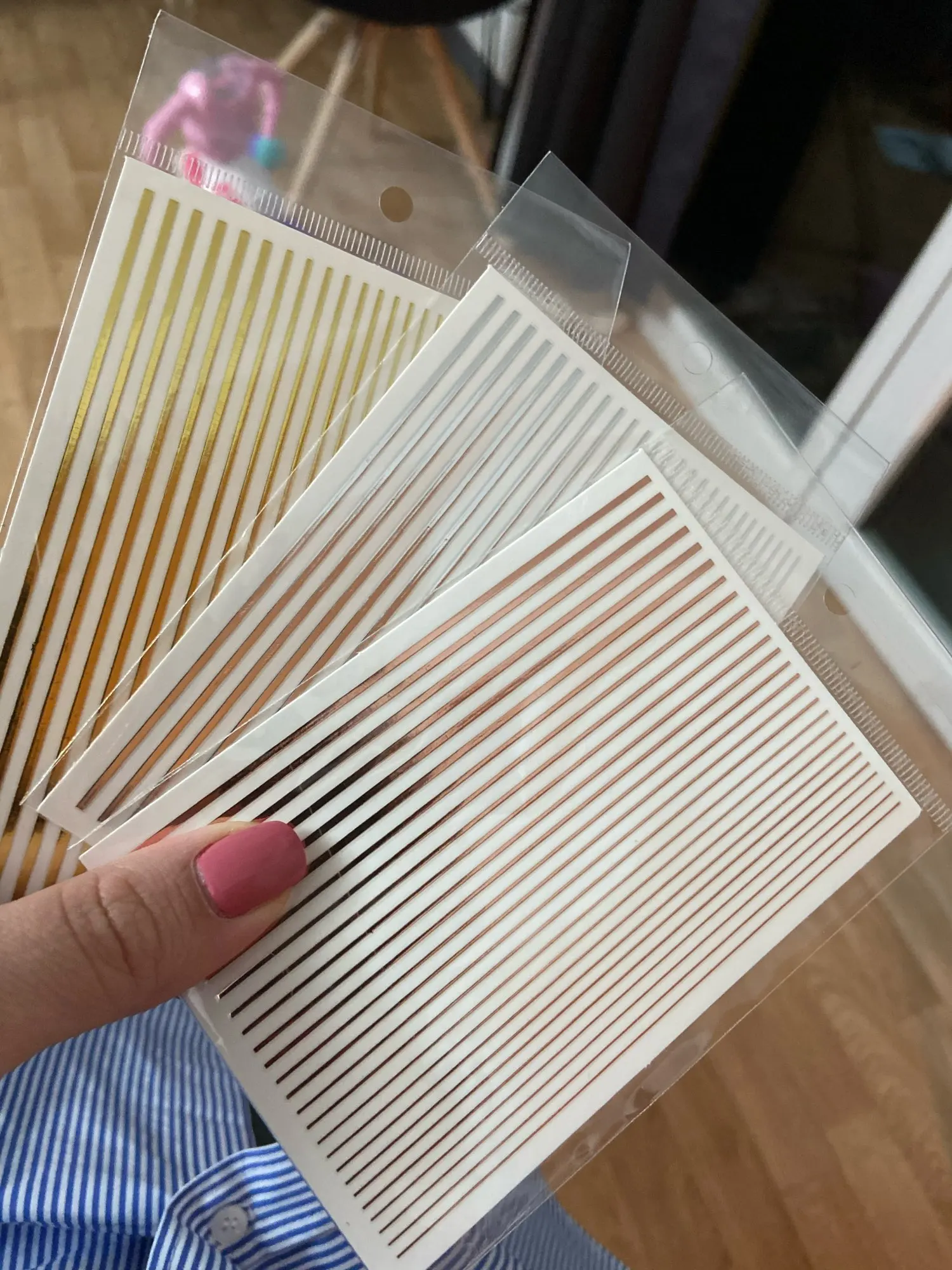 Наклейки для ногтей, 1 лист, золотистые, серебристые, белые полоски, 3D металлическая лента, клейкая лента для творчества, красоты, украшения для ногтей, наклейки