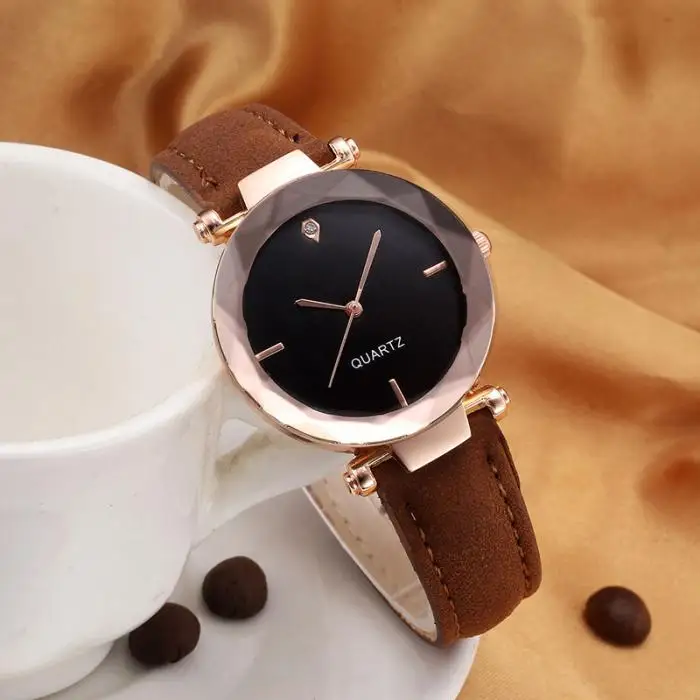 Droppshiping Для женщин часы с кварцевым механизмом каменной кладки класса люкс Звездный циферблат из искусственной кожи наручные часы с кожаным ремешком dg88