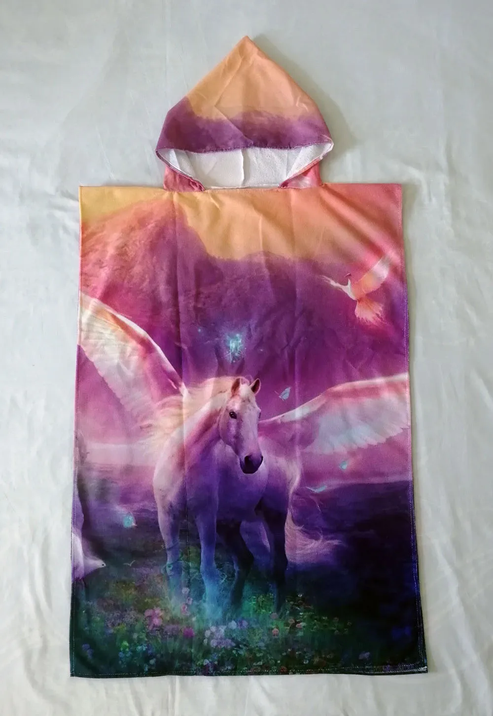 Новинка, крутой рисунок в виде животных, волка, Льва, совы, слона, лошади, единорога, Луны Пляжное полотенце с капюшоном для взрослых детей; Накидка-пончо