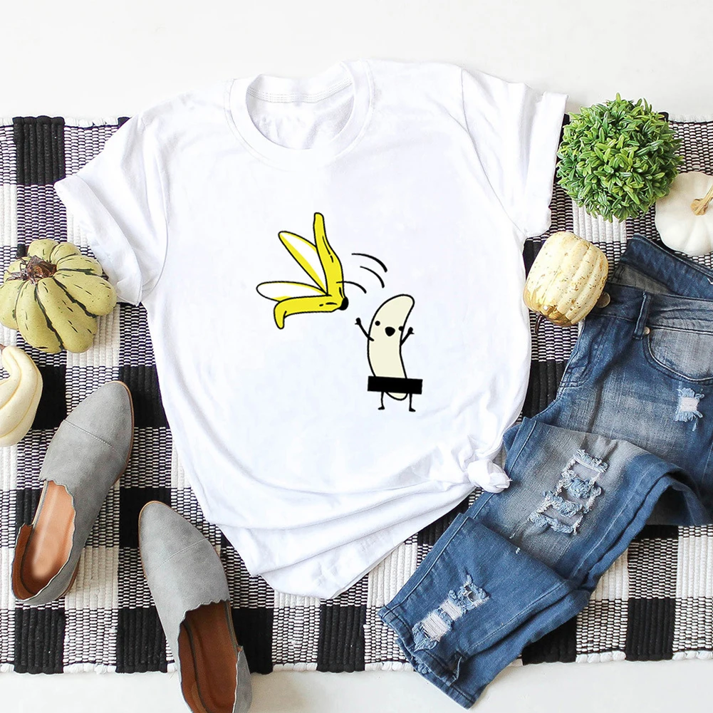 Женская летняя футболка с забавным мультяшным принтом без одежды и бананов, футболка с коротким рукавом и круглым вырезом