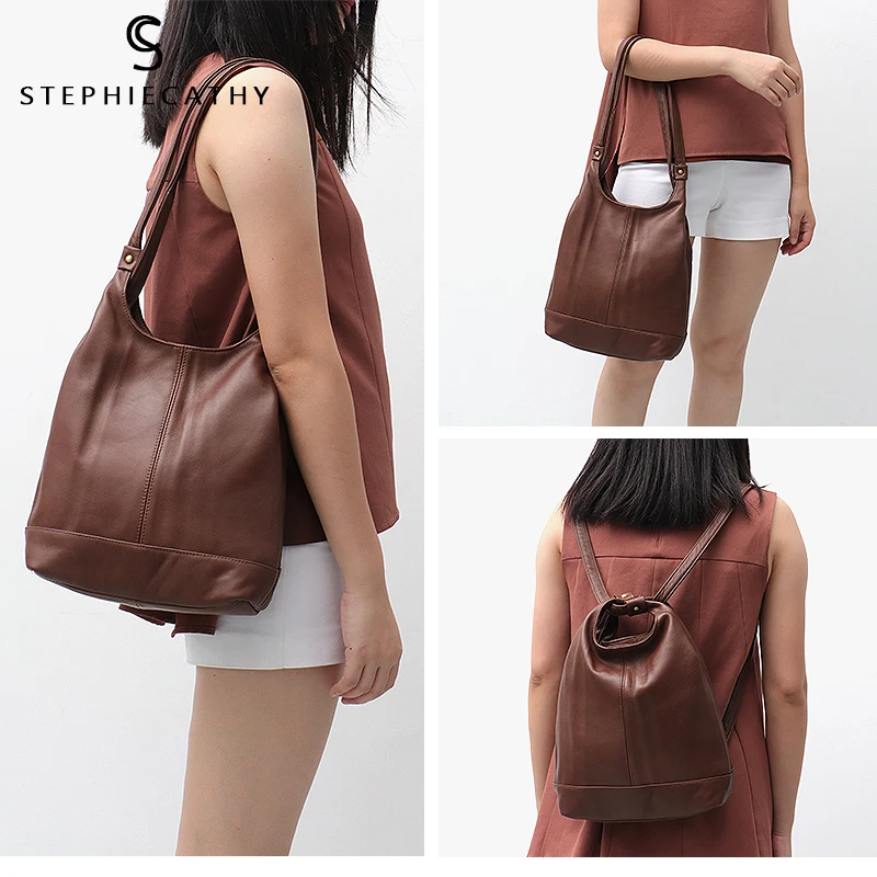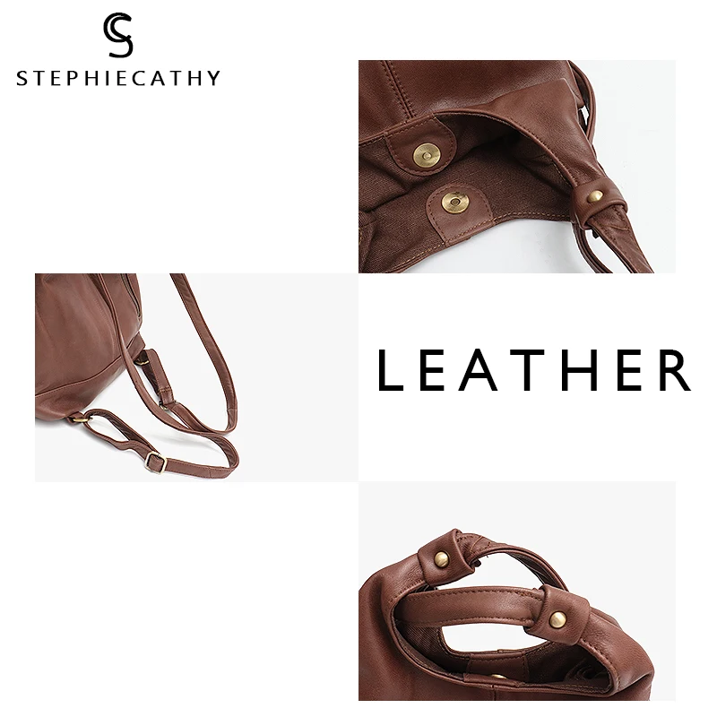 SC 2019 брендовые ретро сумки на плечо из натуральной кожи для женщин винтажный мягкий кожаный рюкзак для девушек Повседневный школьный ранец дамская сумка