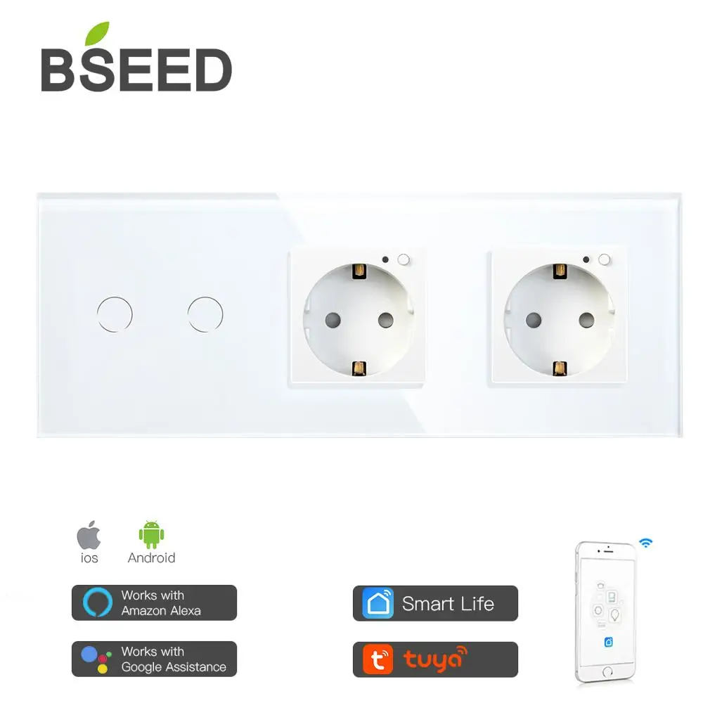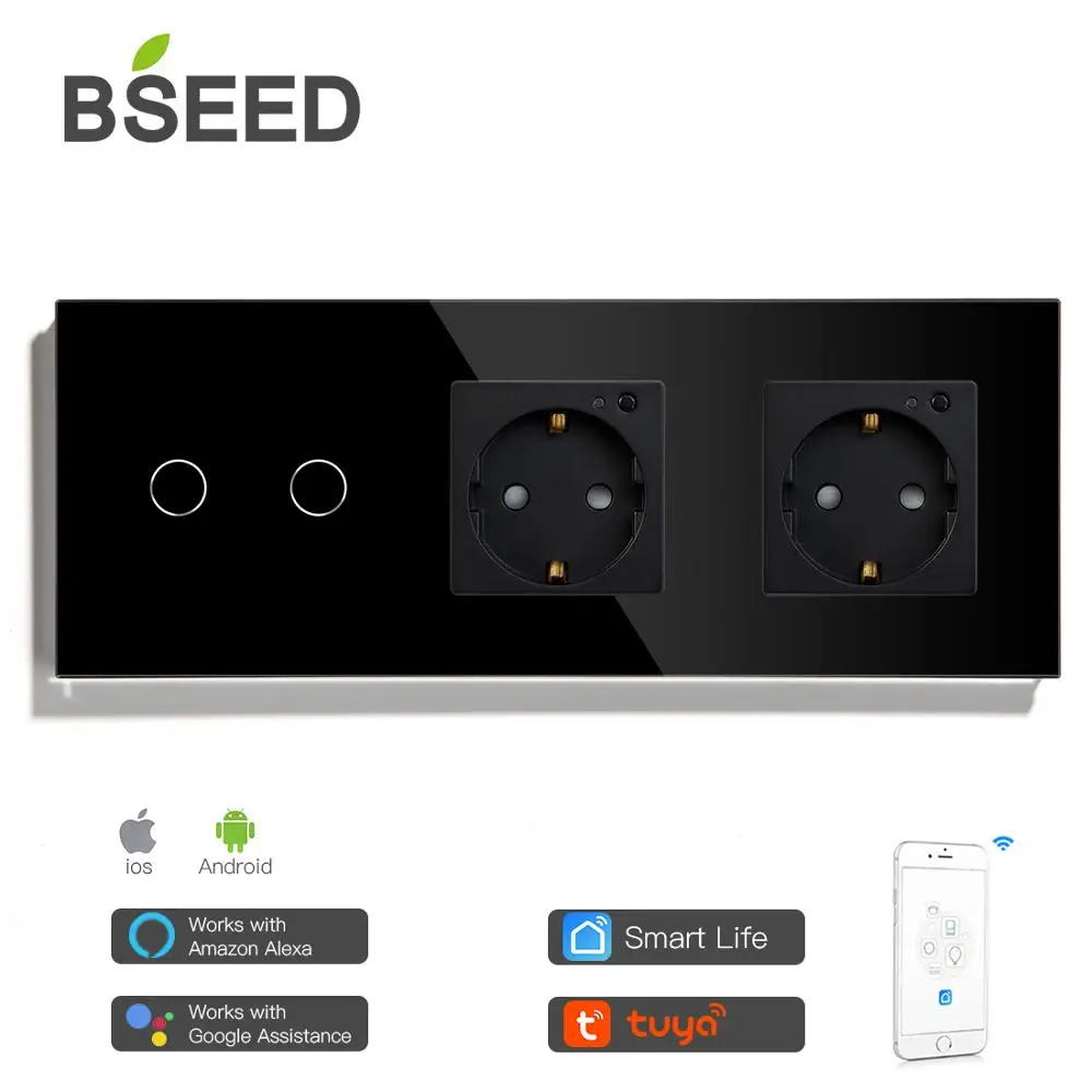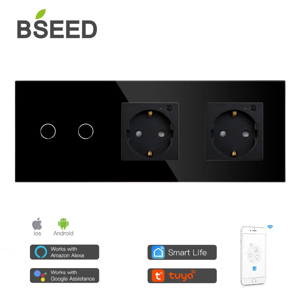 BSEED двойной WiFi ЕС розетки 2 банды 1Way Wifi переключатель с белым черным Gloden Хрустальная стеклянная панель управления Alexa Google ,tuya