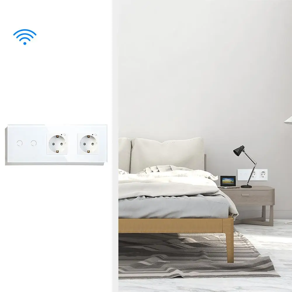 BSEED двойной WiFi ЕС розетки 2 банды переключатель с белый черный Gloden кристалл стеклянная панель управления Alexa Google ,tuya