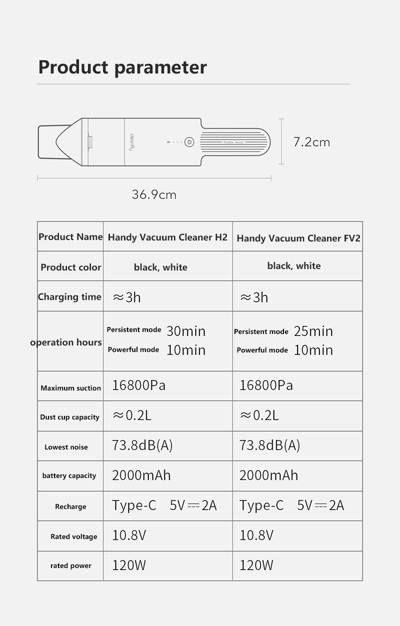 Большая емкость и высокая производительность аккумулятора хватает на 30 минут Три высокопроизводительных аккумулятора емкостью 2000 мАч обеспечивают более длительный срок службы батареи. Интерфейс Type-C используется для зарядки, которая является гибкой и удобной. Длительный режим может работать эффективно в течение 30 минут, и очистка всей семьи находится под контролем.