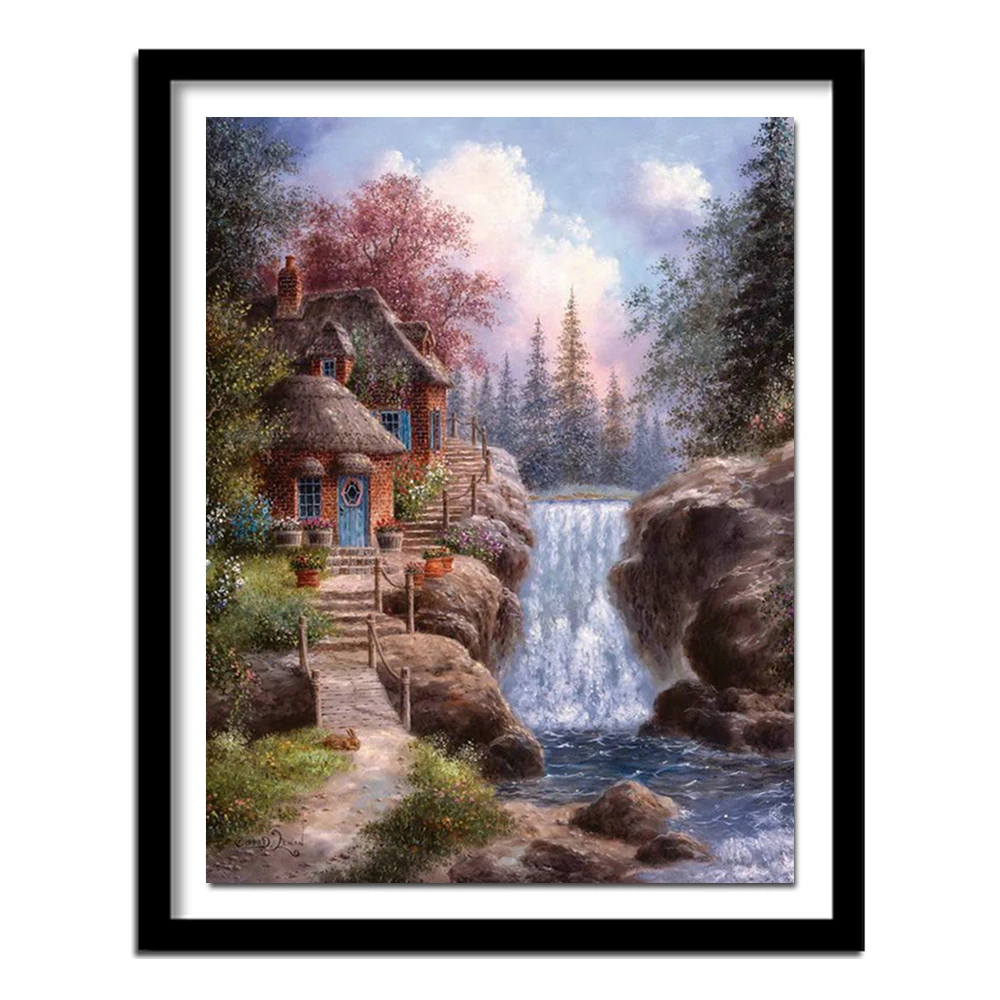 Полный квадратный водопад дом 5d алмазная картина со стразами вышивки крестом декоративный бриллиантовый вышивка живопись F111