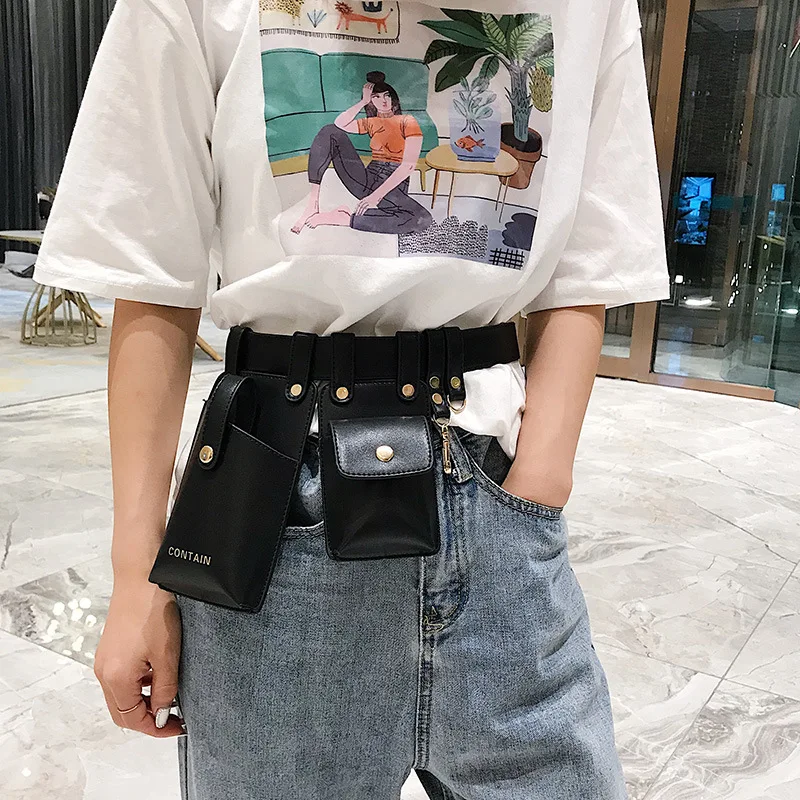 Женский, черный Панк Пояс Hip школьная крутая сумка для Высокое качество Для женщин пояс поясные сумки роскошные кожаные поясная сумка ремень женский кошелек 230