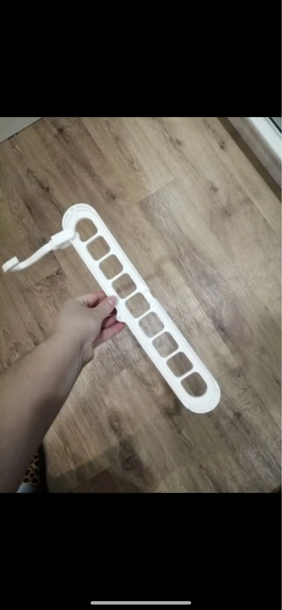 Вешалка совсем не понравилась.Еслиб увидела нхиикогда бы не купила.Крючок не фиксируеться.вешалка на нем болтаеться.если только от весаа одежды и то будет болтаться.Жаль потраченые деньги.
