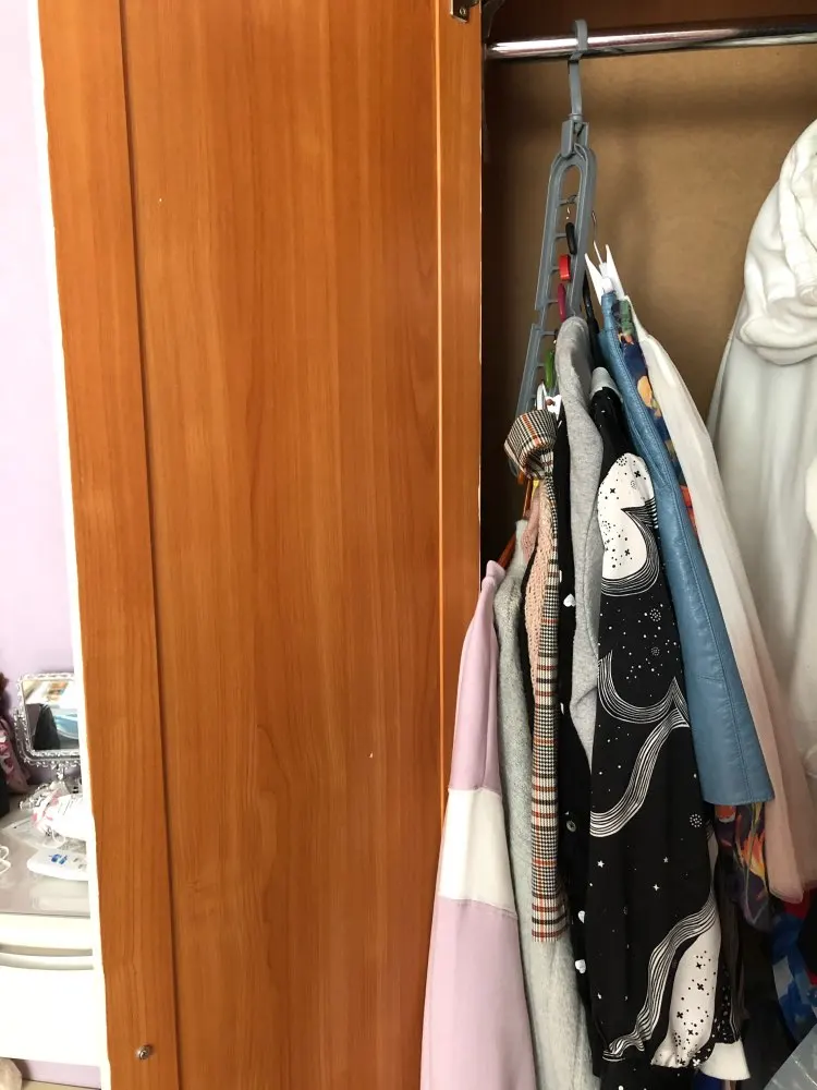 Вешалка шла полтора месяца, не отслеживалась. Места в шкафу стало чуть больше, но ещё не разобралась, удобно ли будет брать одежду с неё. Для детских вещей или не сильно длинных я думаю вещь подходящая. По прочности на первый взгляд достаточно много одежды может выдержать, посмотрим как будет на практике