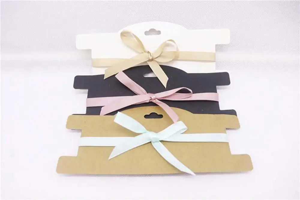 Новинка, 20 шт.лот, бумажная карта 300gsm 7,7*18 см, пустая белая, черная, коричневая лента для волос и зажим, бесплатная доставка, можно напечатать логотип (дополнительная стоимость)