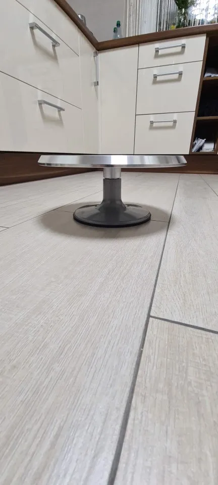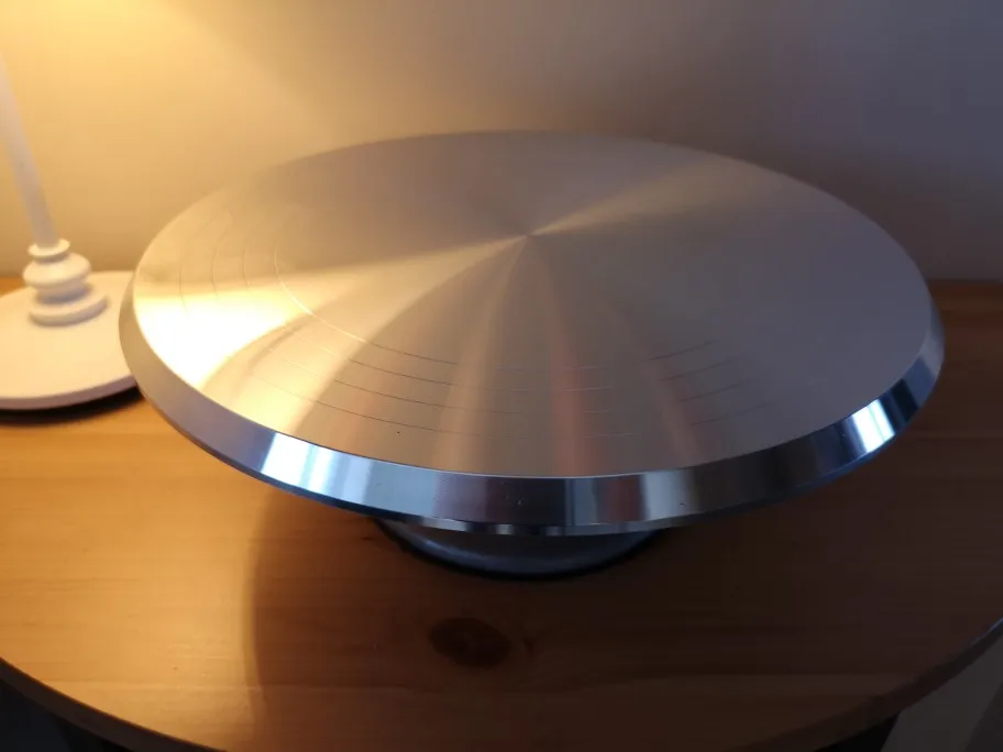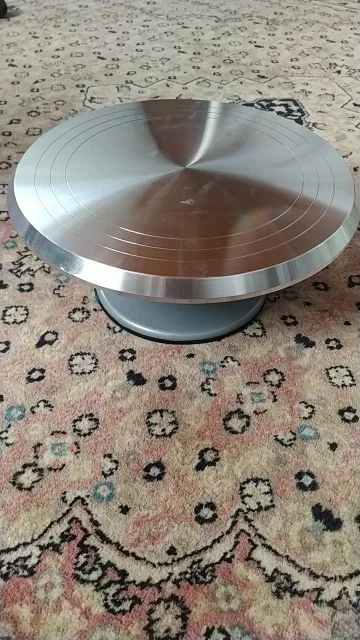 Поворотный стол добрался до Санкт-Петербурга за 21 день. Качество очень хорошее. Всё как в описании. Изготовлен полностью из силумина, только ось подшипников из стали. Брал самый большой для своих девчонки кондитеров, они просто в восторге. Стол вращается на двух подшипниках очень мягко, но пришлось эти подшипники разобрать и забить туда новую, хорошую, водоотталкивающую смазку, так как девчонки залили их водой. Мой совет смазку поменять. Заказом я очень доволен. Товар рекомендую, продавца тоже. Спасибо!!!