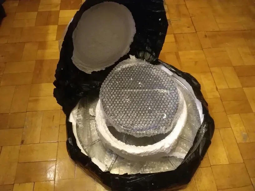 посылка была упакована в пакете с небольшими пенопластовым прокладками. в результате повредилась резинка на подставке, и есть вмятина на боку самого диска, хотя может это и заводские дефекты.