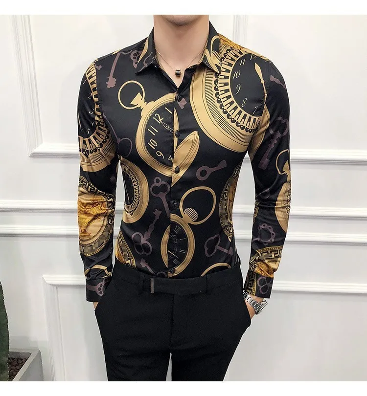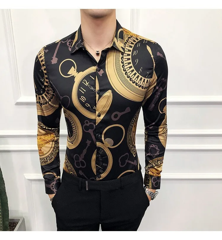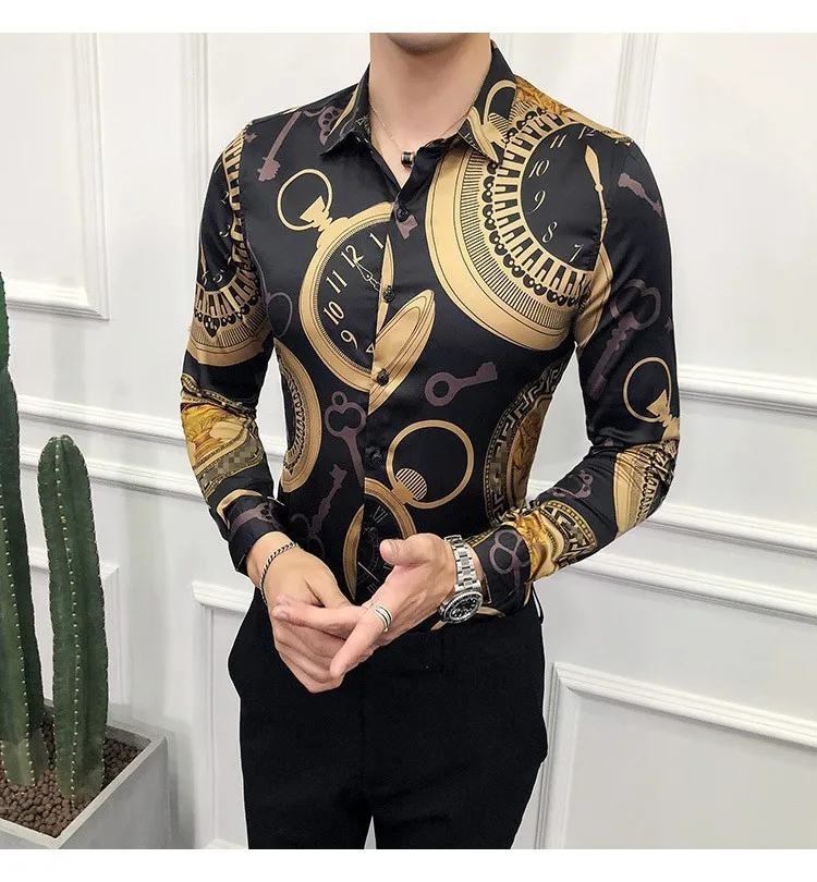 M-6XL класса люкс с золотым принтом Повседневная рубашка для мужчин...