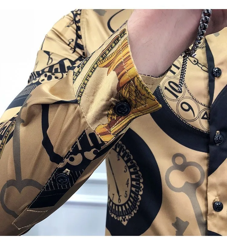 Мужская Повседневная рубашка с длинным рукавом, золотистая приталенная рубашка в Корейском стиле, роскошная рубашка-смокинг для работы в ночном клубе, 6XL, 2019