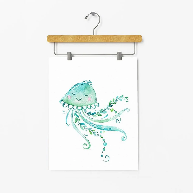 Детский Океанский принт, русалки и морские животные, плакат для детской стены, художественный декор, черепаха, холст, живопись, украшение для комнаты для маленьких девочек