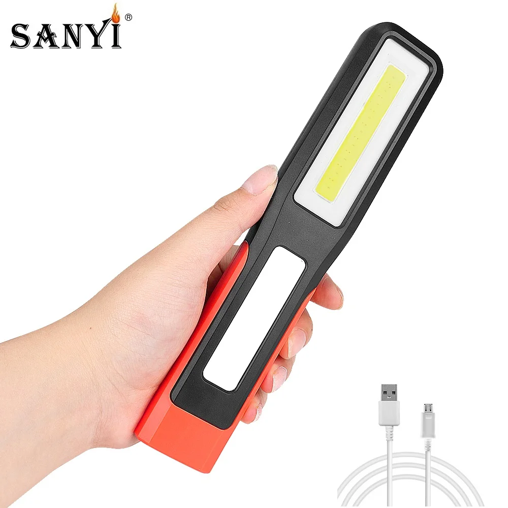 Светодиодный фонарь рабочего света COB, 3 режима, контрольная лампа, USB зарядка, магнитная вспышка, поворотный крюк, для ремонта автомобилей, с аккумулятором
