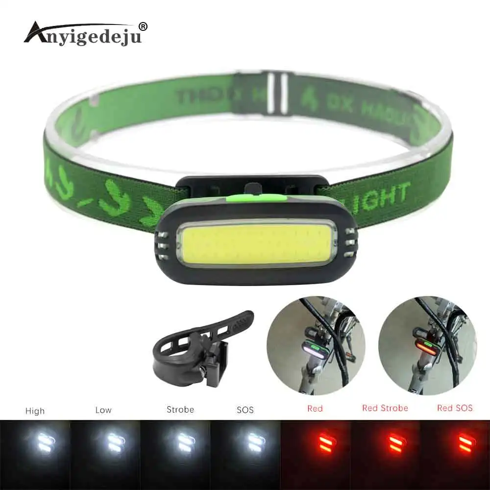 ANYIGEDEJU красная вспышка лампа 7 режимов фар Bycicle зажим Кронштейн светодиодный COB фонарик лоб для езды на велосипеде 2 в 1 велосипед AAA свет