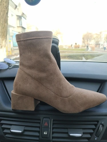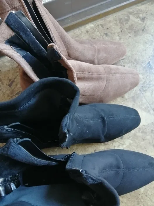 Ботиночки классные, аккуратные, без изъянов. На ногу 23,5 средней полноты брала 37 по сетке продавца, сели отлично, правда на улицу ещё ходила. У меня не сильно отходит от щиколотки, возможно из-за того что высокий подьем. Доставка быстрая,;2,5 недели. Теперь по цвету, вот тут проблемка. Это не хаки как в нашем понимании, скорее кофейный с добавлением немного молока, мокко по-моему, так называется. Цвет сложный, не подо все подойдёт, во всяком случае в моем гардеробе. Цвет камера не передаёт, фото не выкладываю. Звезду не снимаю, классные, удобные, искусственная замша, но очень мягкая. Спасибо продавцу большое.