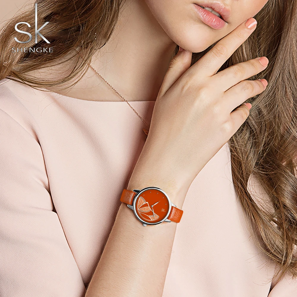 Часы SHENGKE женские кварцевые, повседневные водонепроницаемые модные креативные черные наручные, с изображением бабочки, цвет розовое золото, подарок для девушек