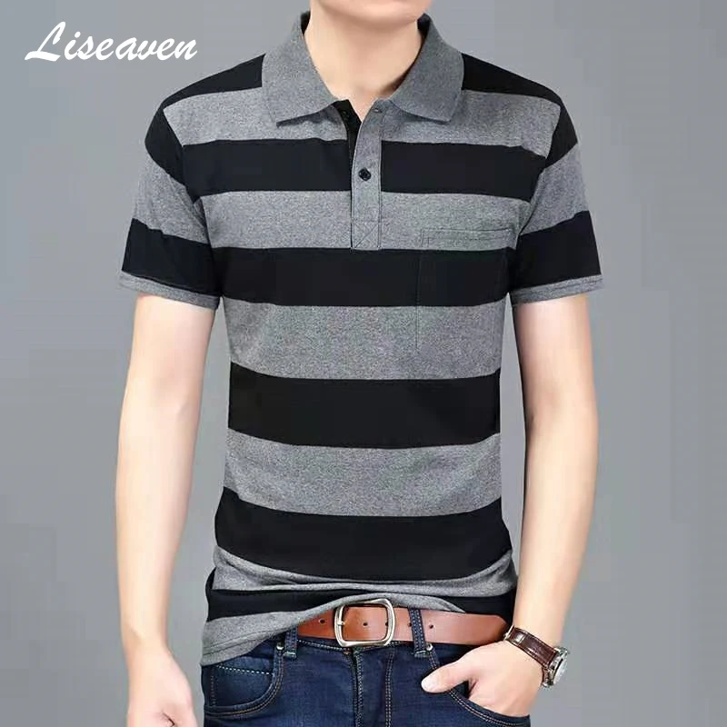 Мужская полосатая рубашка-поло lisслабен, летняя рубашка-поло с коротким рукавом, Топы И Футболки, брендовая одежда для мужчин, 2019