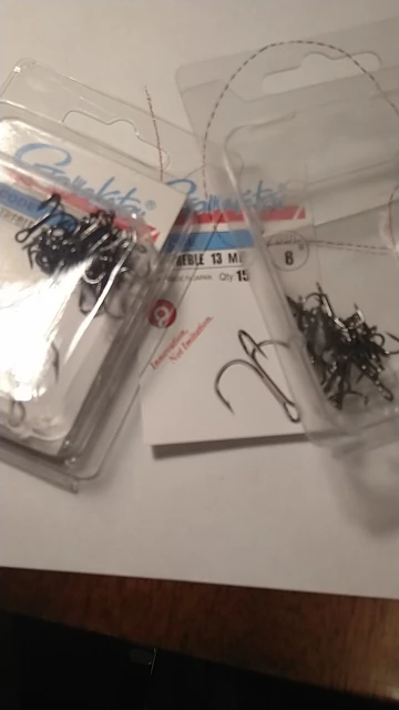 Крючки острые но не все,ну это подточим!!!Тройник длинный,номер 6 выглядит как номер 8 только удлиненный.Я такие тройники поставлю только на вертушки и колебалки,на воблеры не советую, лучше ищите подороже!!!всем НХНЧ!!!