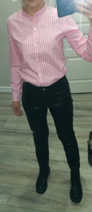Рубашка немного маломерит, сначала списала на широкие плечи, но почитав отзывы поняла, что такая проблема не только у меня. От плеч отстала. Смотрится не плохо, но и не вау. Хотя...за эти деньги рада и этому. Плюс ко всему, получила комплимент от продавца в виде носочек. Мелочь, а приятно))