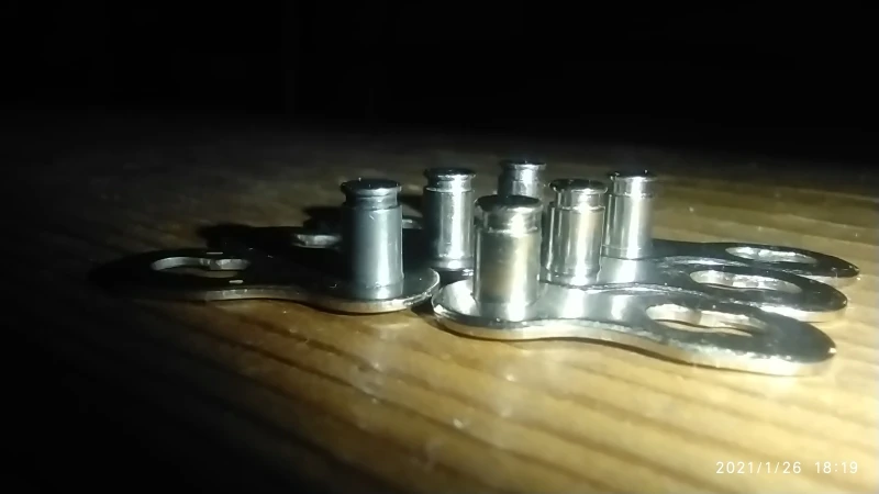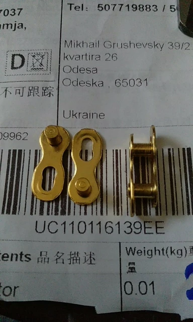 Доставка чуть больше 2 месяца. Никогда не пользовался такими, но почему-то у трёх паз на пине шире, чем на других трёх. Получается, что одна пара застёгивается пальцами без каких-либо усилий, вторая до половины с большими усилиями, а третья вообще никак. На цепь для 8s (ноунейм) ни одна пара (в разных комбинациях) так и не застегнулась.