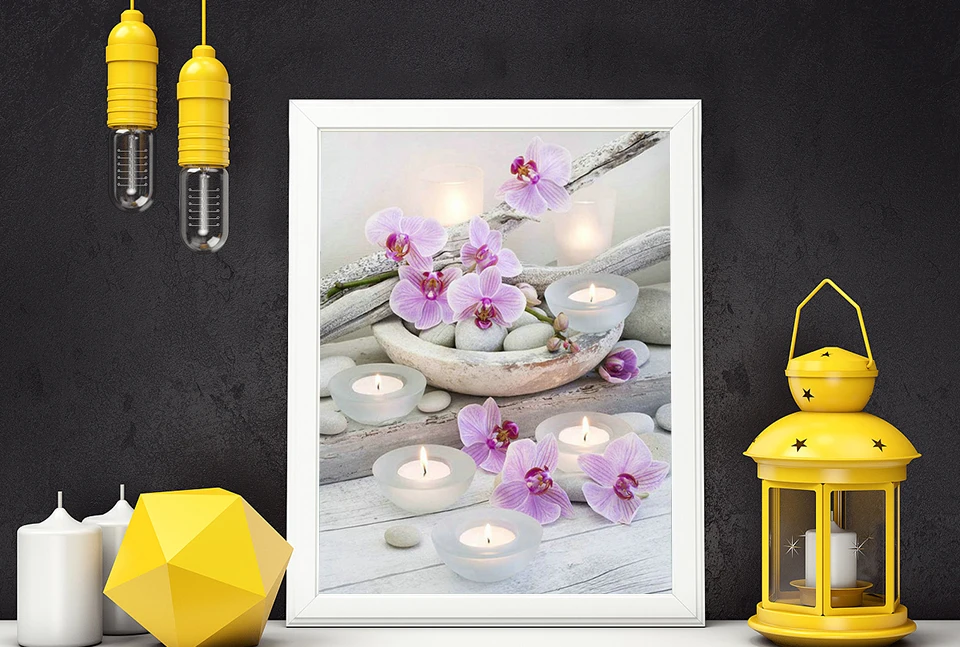 Орхидея, камень и свеча DIY Алмазная картина вышивка крестиком комплект вышивки узоры из страз искусство DW181