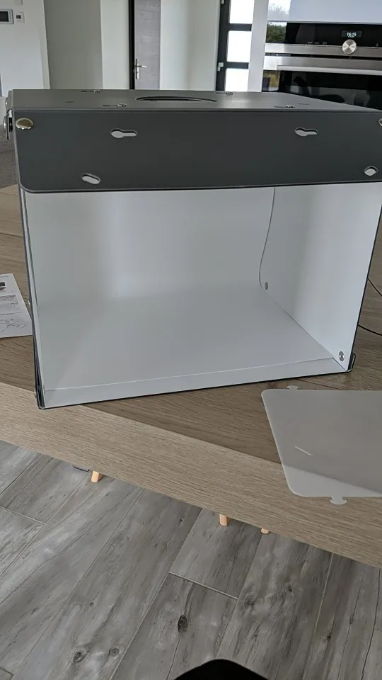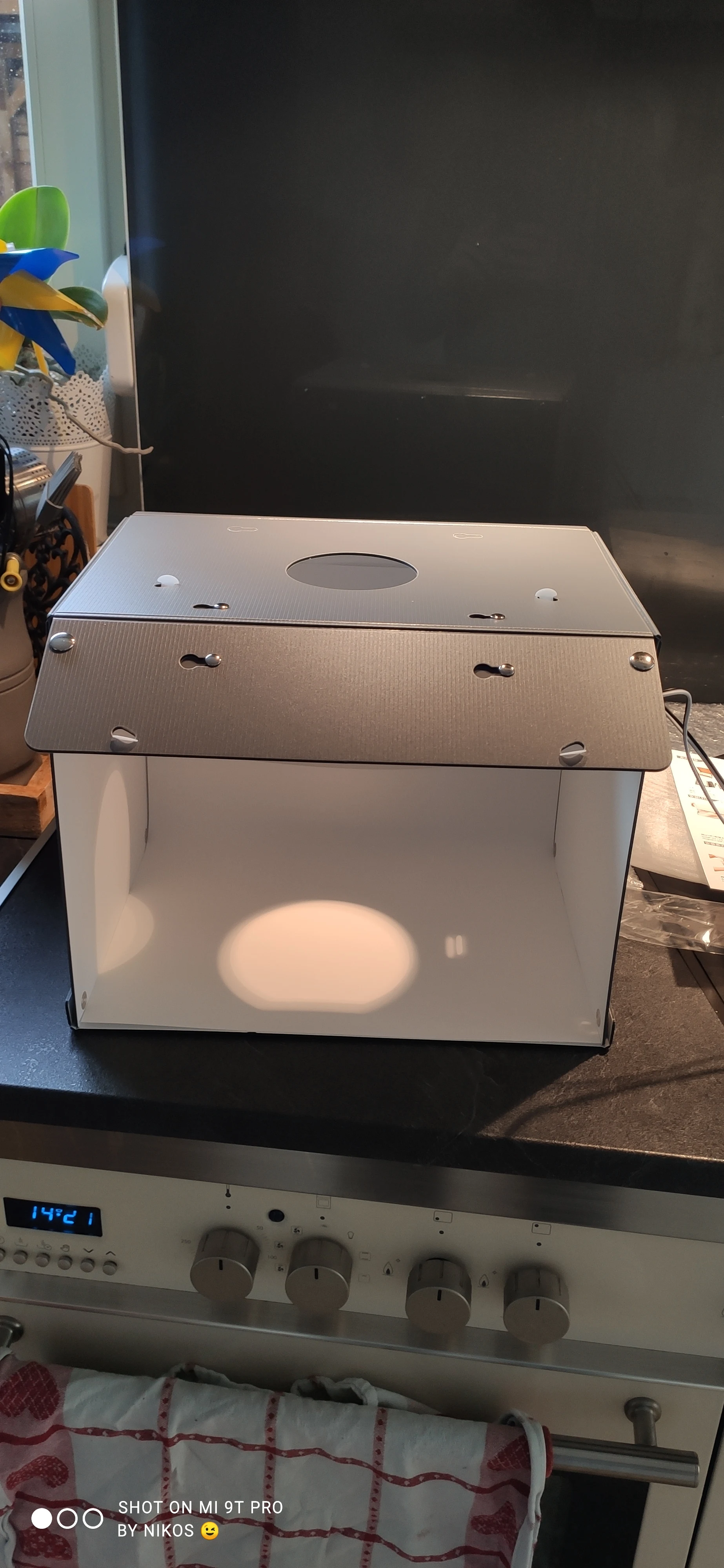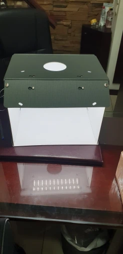 достойный фотобокс. Расстроило только то, сто ы инструкции к нему нарисовано, что лучше 3 лампы крепить, а в комплекте только 2. так что заказываете сразу дополнительные. в прикрепленных фото те, что более светлые, уже с цветокоррекцией. последняя без цветокорекции, как есть.