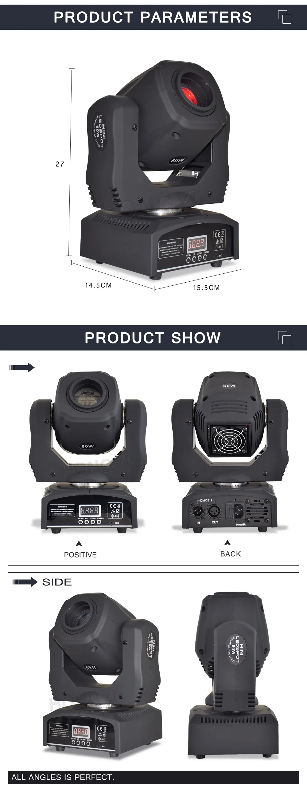 Светодиодный мини-прожектор Lyre с движущейся головкой, 60 Вт, 7Gobos Dmx 512, управление для диджея, дискотеки, шоу, бара, ночного клуба Вечерние