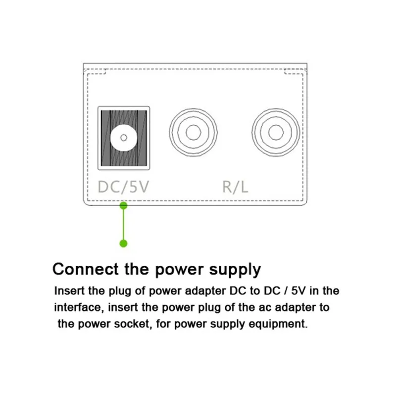 Преобразует коаксиальные или Toslink цифровые аудиосигналы в аналоговый L/R аудио.
