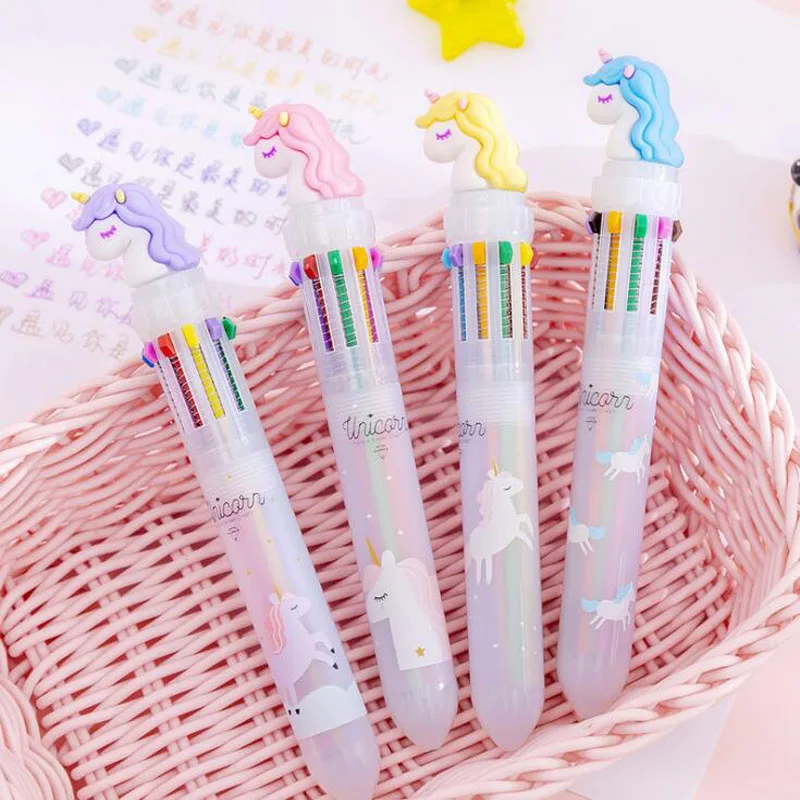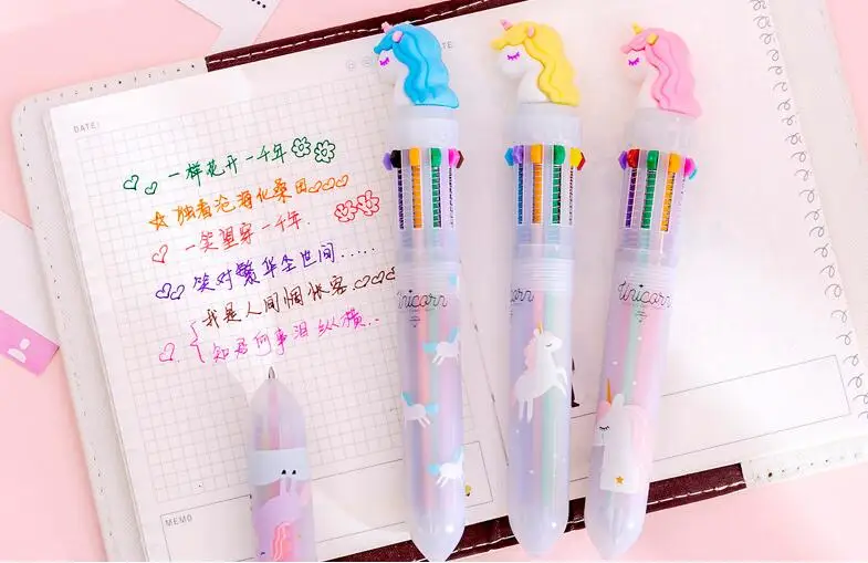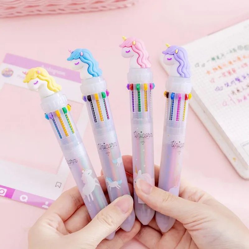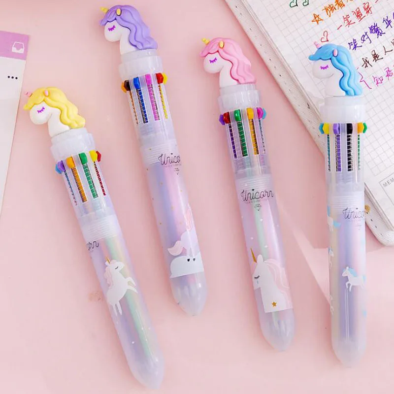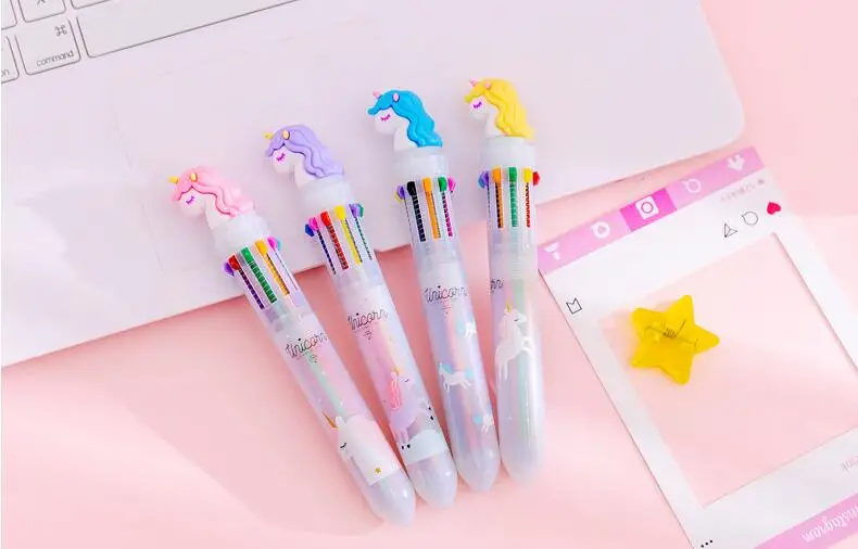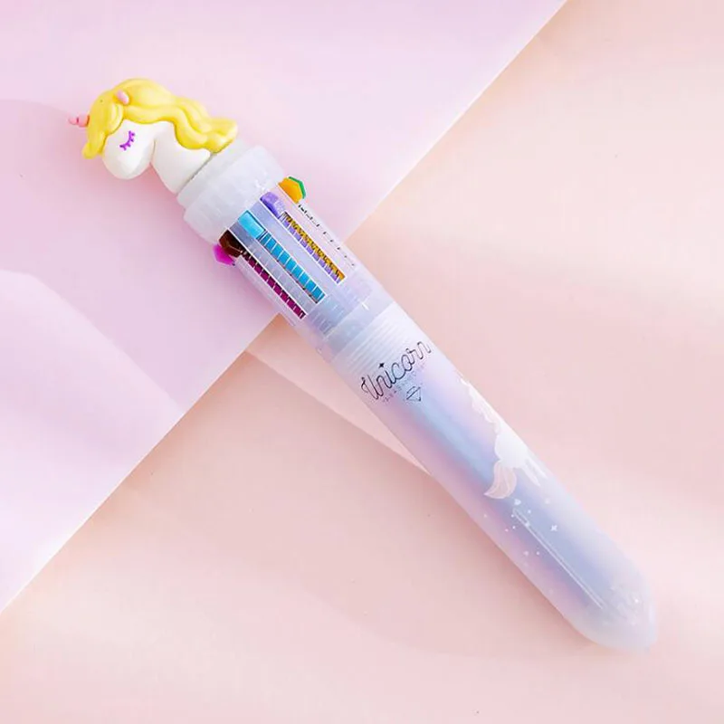 1 шт. милый Единорог 10 цветов ручка креативный Единорог разноцветная ручка мультфильм десять цветов шариковая ручка с рисунком единорога студенческий офис Канцтовары