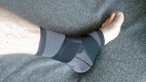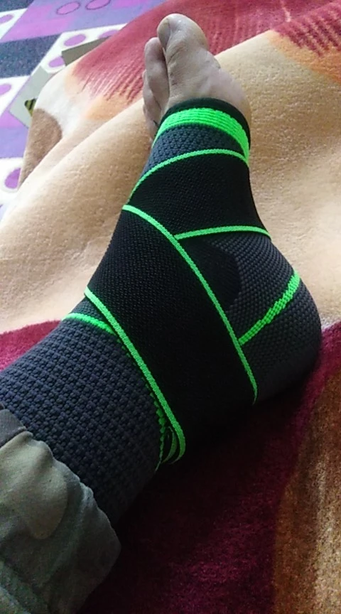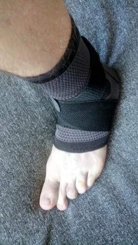 Бандаж очень эластичный, и тугой На ноге сидит комфортно, свою функцию выполняет 99%. Есть один минус, ткань очень сильно затягивается на местах фиксации лепестками. В целом достойный товар, продавцу спасибо.