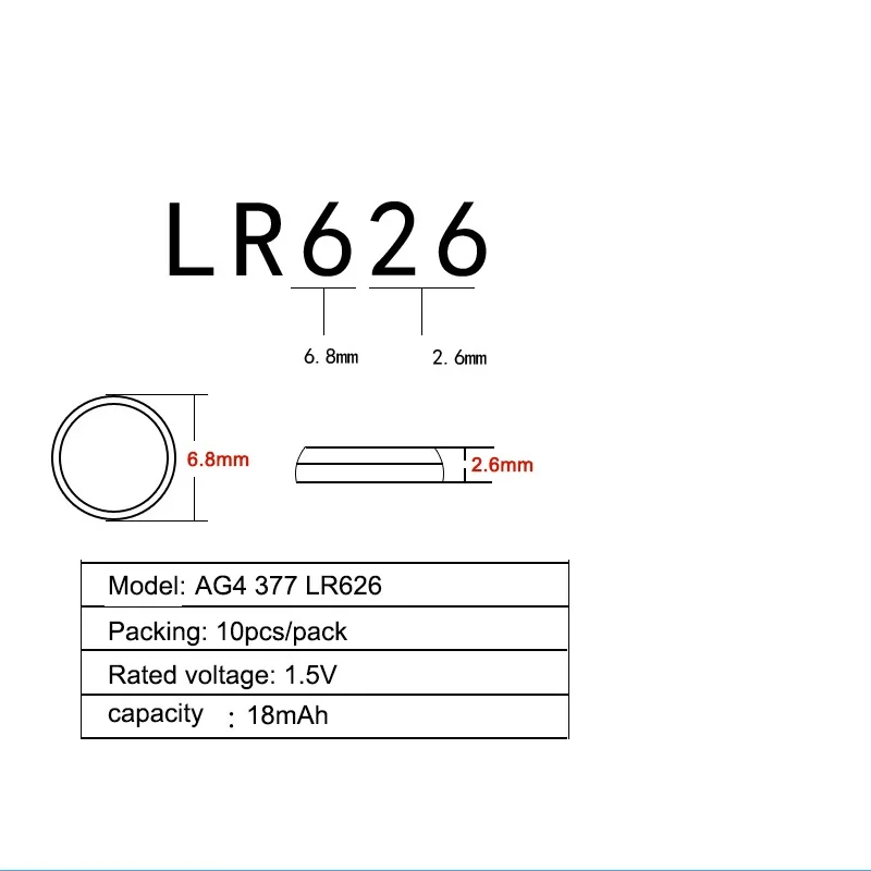 100 шт. AG4 377A 377 LR626 SR626SW SR66 LR66 кнопочный элемент батарея монетного типа для часов