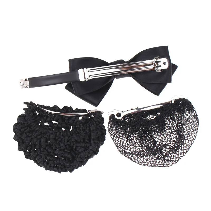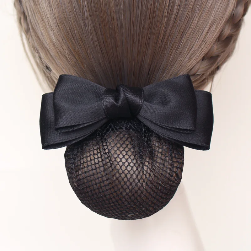 Модные заколки для волос из плотной ткани с бантом, Женские аксессуары для стюардессы, медсестры, отеля, банты для волос, сетчатый булочка, чехол для снуда