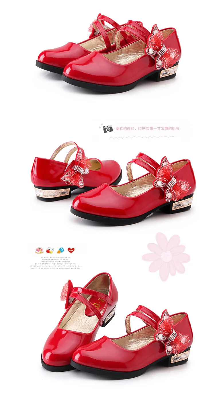 Обувь для девочек, детские туфли принцессы, кожаное платье, модная детская обувь со стразами и бабочками, школьная черная обувь на низком каблуке для вечеринки и танцев