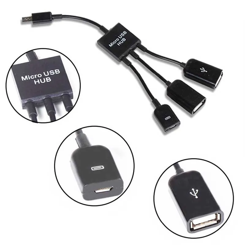 Один Males Micro USB подключается к одному Micro USB female и двум USB 2,0 Female для внешних устройств